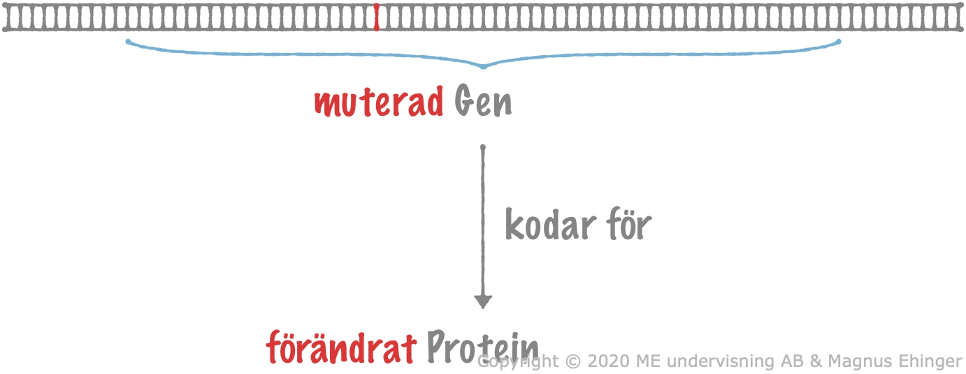 Förändring i gen ⇒ förändring i proteinets aminosyrasekvens ⇒ förändring i proteinets struktur ⇒ förändring i proteinets funktion.