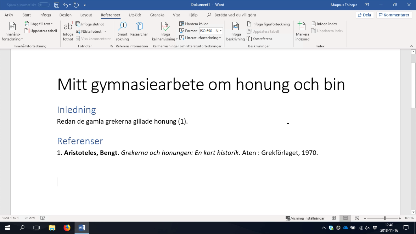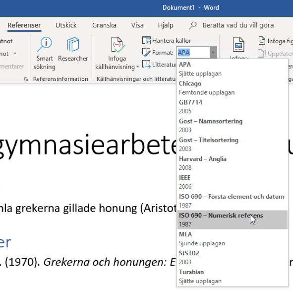 Du behöver inte lägga en massa tid på att få korrekt formaterade källor och notapparat till ditt gymnasiearbete – du kan låta Word göra det automatiskt åt dig!