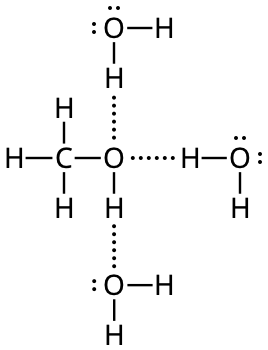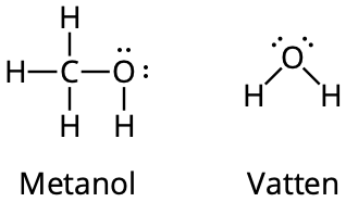 - Metanol är mycket lättlösligt i vatten. Du kan se strukturformlerna för metanol och vatten nedan.