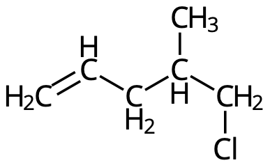 - Skriv formeln för 5-klor-4-metyl-1-penten. Samtliga atomer skall vara med. (1p)
