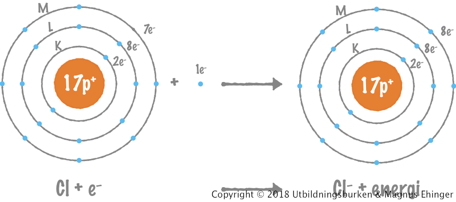 | Na | K | L | M | + | Cl | K | L | M | → | Na+ | K | L | M | + | Cl– | K | L | M |