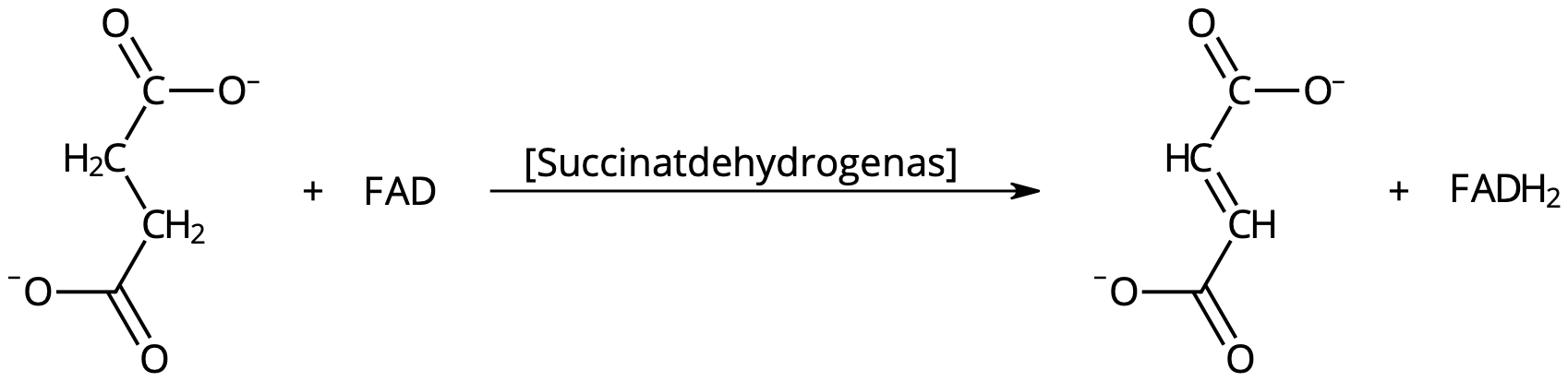 I ett av stegen i citronsyracykeln elimineras väte ifrån succinat (bärnstenssyra), varpå det bildas fumarat (fumarsyra). Det sker under inverkan av enzymet succinatdehydrogenas, och samtidigt bildas FADH2. Succinatdehydrogenaset sitter i mitkondriens inre membran, och deltar också direkt i elektrontransportkedjan. Alltsammans sker enligt nedanstående reaktionsformel: