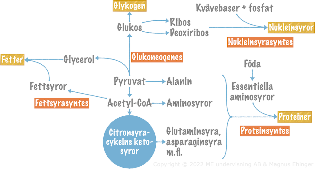 Glukos kan nybildas bildas ur pyruvatjoner.