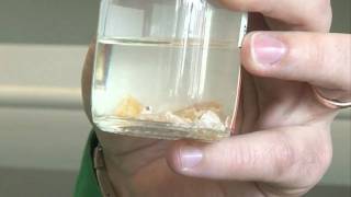 Det mannen i klippet gör att han placerar en bit vit fosfor (P4) i en kolv som han fyllt med syrgas (O2). Genom att hetta upp fosforn med en värmd kopparstav, sätter han igång en reaktion där det bildas fosforpentaoxid (P2O5):