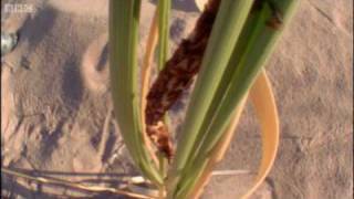 Den andra av insekterna är en slags oljebagge. Den får ungar, som kapar en lift med en jordgeting. Väl i jordgetingens håla kalasar de på det pollen getingmamman släpat hem – och när det tar slut, hugger de in på getinglarverna också.