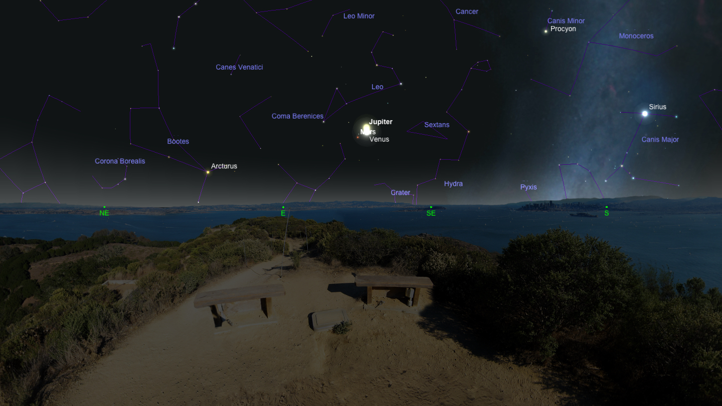 Mars, Venus och Jupiter på stjärnhimlen den 26 oktober 2015.