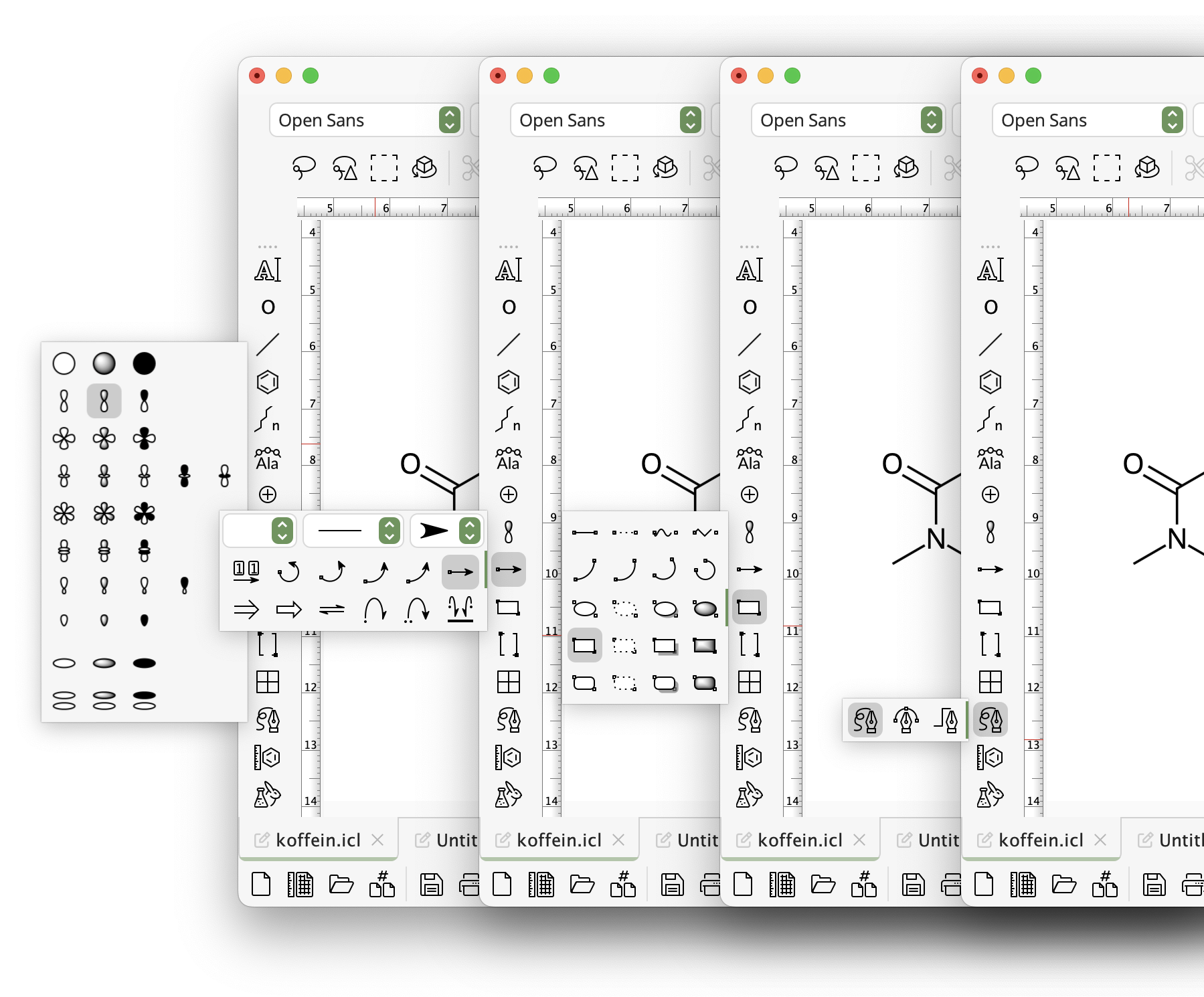 ChemDoodle från iChemLabs kommer i några olika varianter. Det jag har testat är ChemDoodle 2D, som man huvudsakligen kan använda för att rita tvådimensionella strukturformler med. I paketet ingår också ChemDoodle 3D, som man kan använda för att göra och studera tredimensionella molekylmodeller samt en webbaserad variant (som kan användas "on the go", på mobilen). Dessa har jag dock inte använt tillräckligt för att kunna skriva om i denna recension. Alla programmen finns både för Windows, MacOS och Linux.